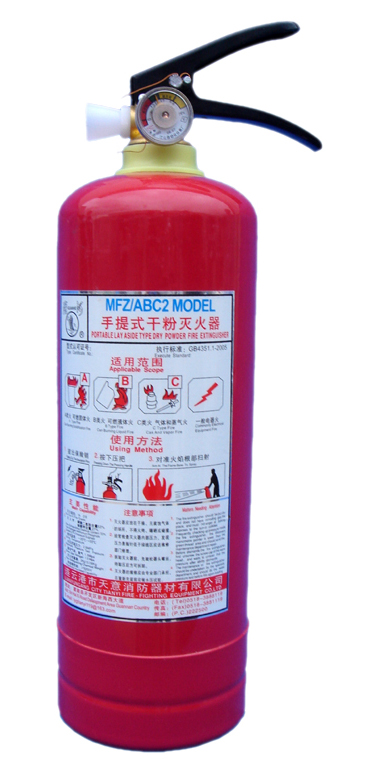 Our company produces the MFZ/BC, MFZ/ABC series dried power fire extinguisher is defers to the GB4351-2005 standard to carry on the production, The casing body is made of the high quality carbon steel after the special processing.The series of fire extinguisher has the simply structure, operation easily and application widespread, easy to operate, lower price and so on.Widely applies in various trades andoccupations.In which 1, 2kg is suitable specially for family and allsmall automobile.